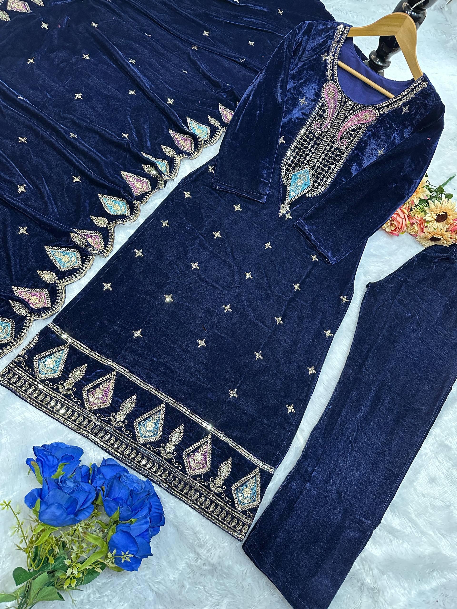 #TOP FABRIC :HAVY VISCOS VELVET WITH HAVY EMBROIDERY WORK